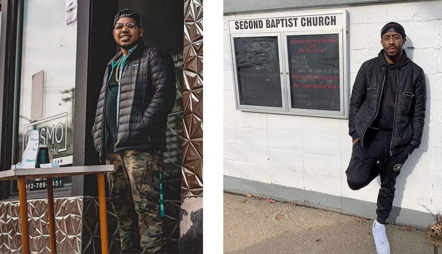 Marcus Glover and Michael Roberts are working the streets in Pittsburgh's East End and Mon Valley communities, selling athletic apparel from their mobile “storefront,” a small white folding table.