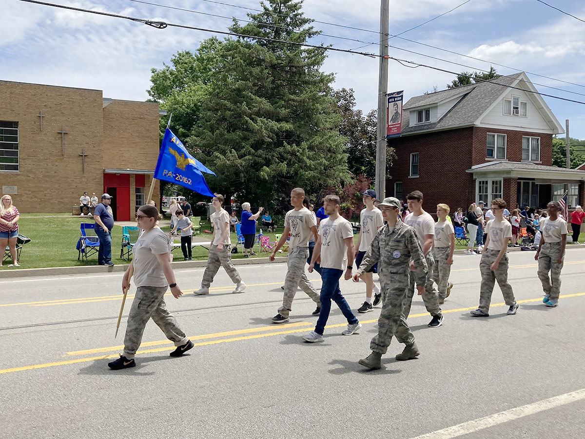 Members of the Air Force Junior ROTC program at McKeesport Area High School marched in Monday’s parade. (Sarah Turnbull photo for Tube City Almanac)