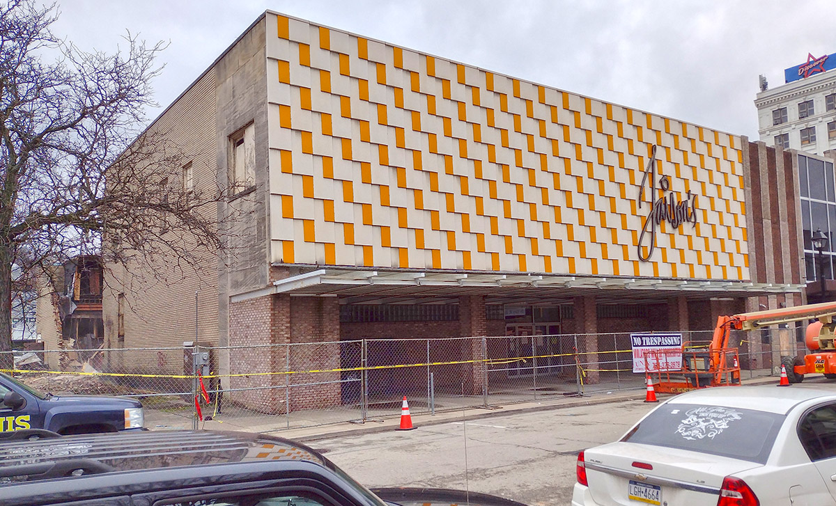 Demolition of the former Jaison’s Department Store on Fifth Avenue, Downtown, began Friday. (Tube City Almanac photo)